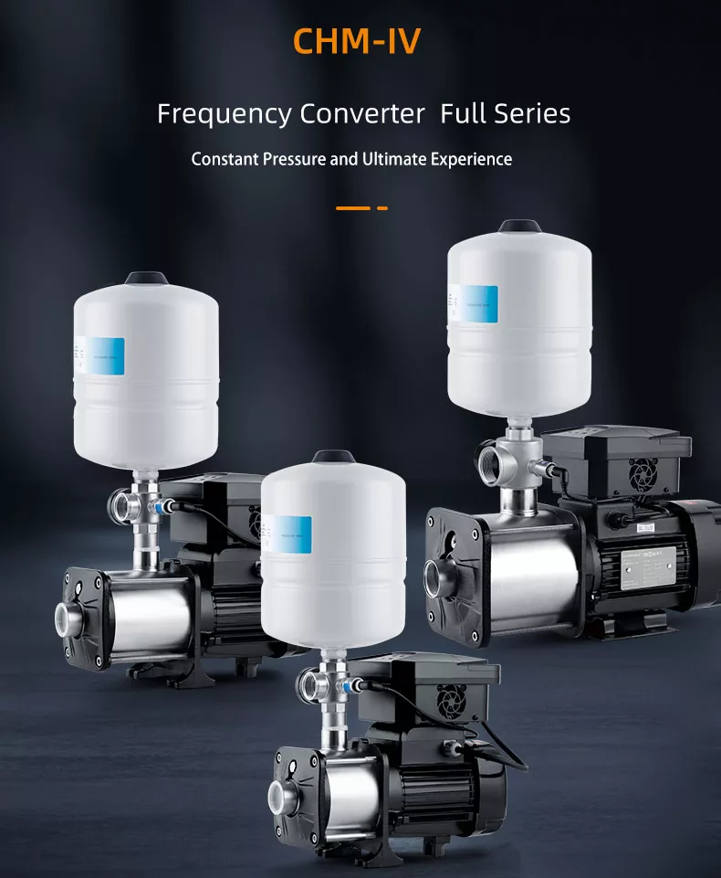 Máy bơm ly tâm đa tầng nằm ngang bằng thép không gỉ biến tần thông minh dòng CHM20/IV là sản phẩm tương đối trưởng thành trên thị trường hiện nay, có cấu trúc nhỏ gọn và hoạt động ổn định, độ ồn khi vận hành thấp, hiệu suất lên tới 44-70%. Tất cả các bộ phận truyền nước đều được làm bằng thép không gỉ AISI304. Nó được sử dụng rộng rãi trong