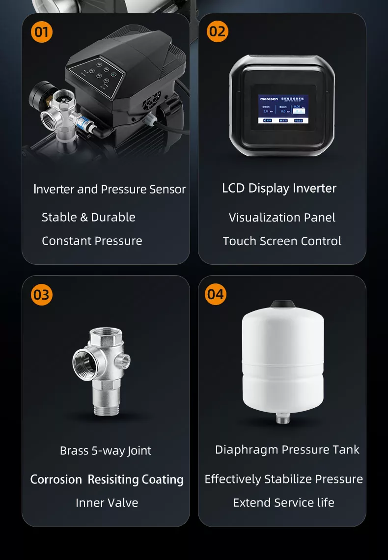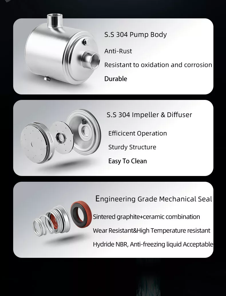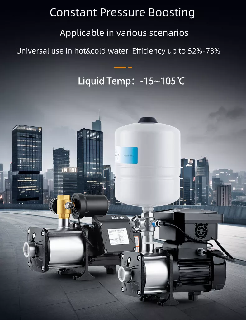 3. Ứng dụng đa năng: Cho dù bạn cần tăng áp lực nước trong các tòa nhà, hệ thống tưới tiêu hay quy trình công nghiệp, máy bơm này đủ linh hoạt để đáp ứng nhiều nhu cầu một cách dễ dàng.