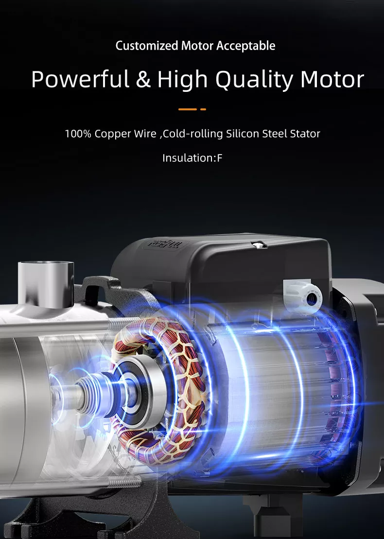 1. Chức năng đa tầng: Máy bơm của chúng tôi tự hào có nhiều cánh quạt hoạt động liền mạch với nhau để cung cấp áp suất và tốc độ dòng chảy cao, khiến nó trở nên hoàn hảo cho các môi trường đòi hỏi khắt khe trong đó hiệu suất ổn định là rất quan trọng.