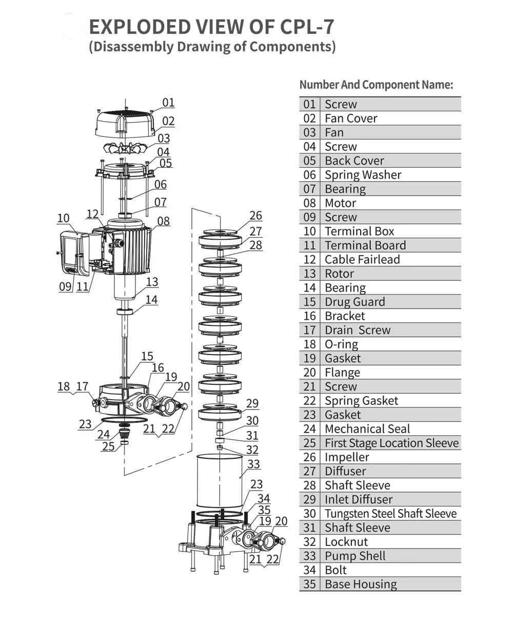 Đầu bơm có thể được điều chỉnh bằng cách thay đổi số lượng cánh quạt để đáp ứng các yêu cầu khác nhau. Nó phù hợp với nước sạch hoặc chất lỏng có đặc tính tương tự, trong khi một số mẫu nhất định có thể được tùy chỉnh cho môi trường ăn mòn.